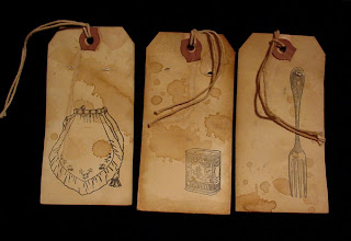 *Add vintage ephemera to your tags with a glue stick for an altered art look.